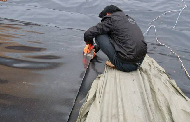 在冬天捕魚后,合理計劃,首先將池水排干,挖去雜物淤泥,晾曬1冬一20天后,在池底和邊坡均勻地鋪貼一層15一20厘米厚的粘土,然后用機械碾壓或夯實。然后鋪設(shè)一層0.5毫米厚的防滲膜做防滲保護層,依照魚塘的形狀精確測量其相關(guān)尺度,然后按實際情況來裁剪和拼接防滲膜,膜與膜之間接縫的搭接寬度通常不小于15厘米,防滲膜鋪設(shè)完成后,應(yīng)盡量削減在膜面上行走、搬動?xùn)|西等,凡能對防滲膜形成損害的物件,均不該放在膜上或攜帶在膜上行走,避免對膜形成意外損害。最后在護坡上撒播一些草種,實施草皮護坡,以防雨水沖刷。